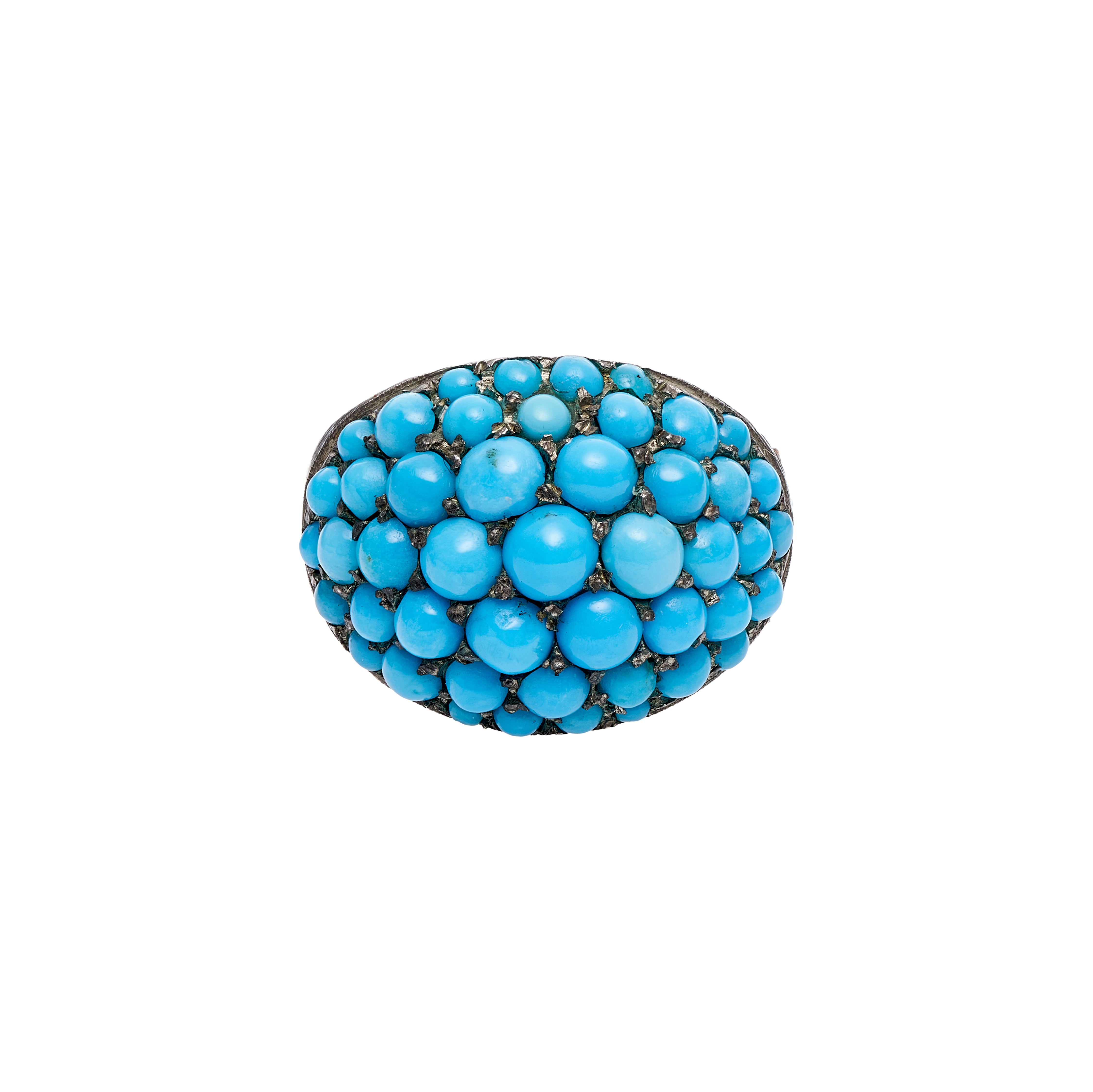 Antique Victorian 18k Turquoise and Diamond Navette Ring