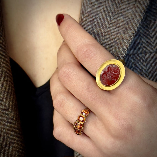 Antique Victorian 18k Rhodolite Garnet w/ Engraved Band Ring
